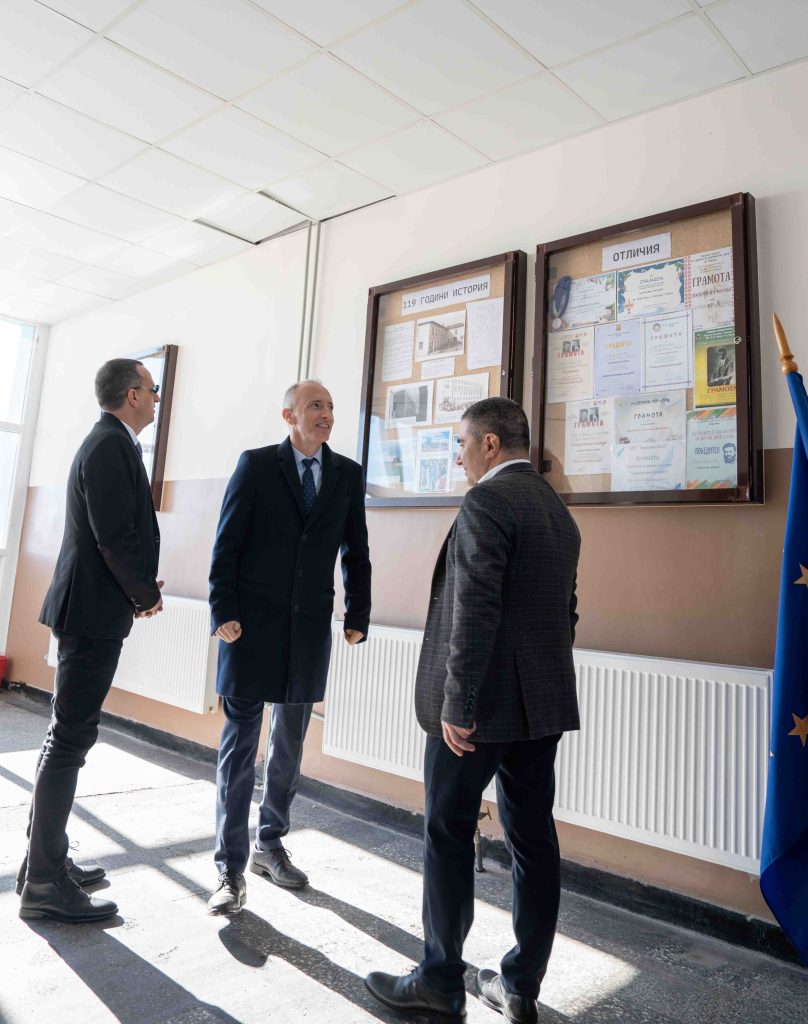 По време на огледа министър Вълчев и г-н Желев-директор на училището, обсъдиха значението на инвестициите в материалната база като ключов фактор за по-добро качество на образованието в община Чирпан.